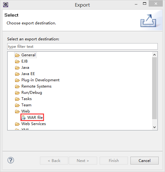 5、选中上图“WAR file‘子节点,然后点击”Next>“按钮,得到下图: