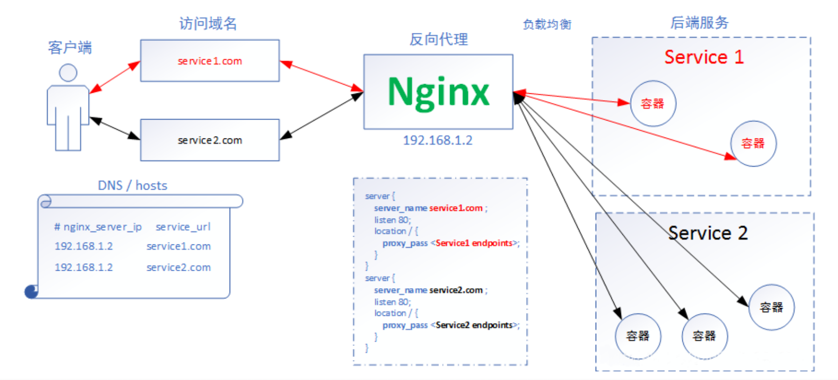 apiVersion: extensions/v1beta1 kind: Deploymentmetadata: name: nginx-dm spec: replicas: 2 template: metadata: labels: name: nginx spec: containers: - name: nginx image: wangyanglinux/myapp:v1 imagePullPolicy: IfNotPresent ports: - containerPort: 80 --- apiVersion: v1 kind: Service metadata: name: nginx-svc spec: ports: - port: 80 targetPort: 80 protocol: TCP selector: name: nginx --- apiVersion: extensions/v1beta1 kind: Ingress metadata: name: nginx-test spec: rules: - host: www1.atguigu.com http: paths: - path: / backend: serviceName: nginx-svc servicePort: 80