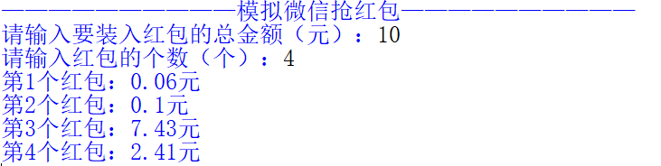 模拟微信抢红包(提示:本实例实现时需要应用生成随机数的random模块),效果如图所示: