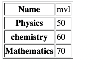 <!doctype html> <table border = 1> {% for key, value in result.items() %} <tr> <th> {{ key }} </th> <td> {{ value }}</td> </tr> {% endfor %} </table>