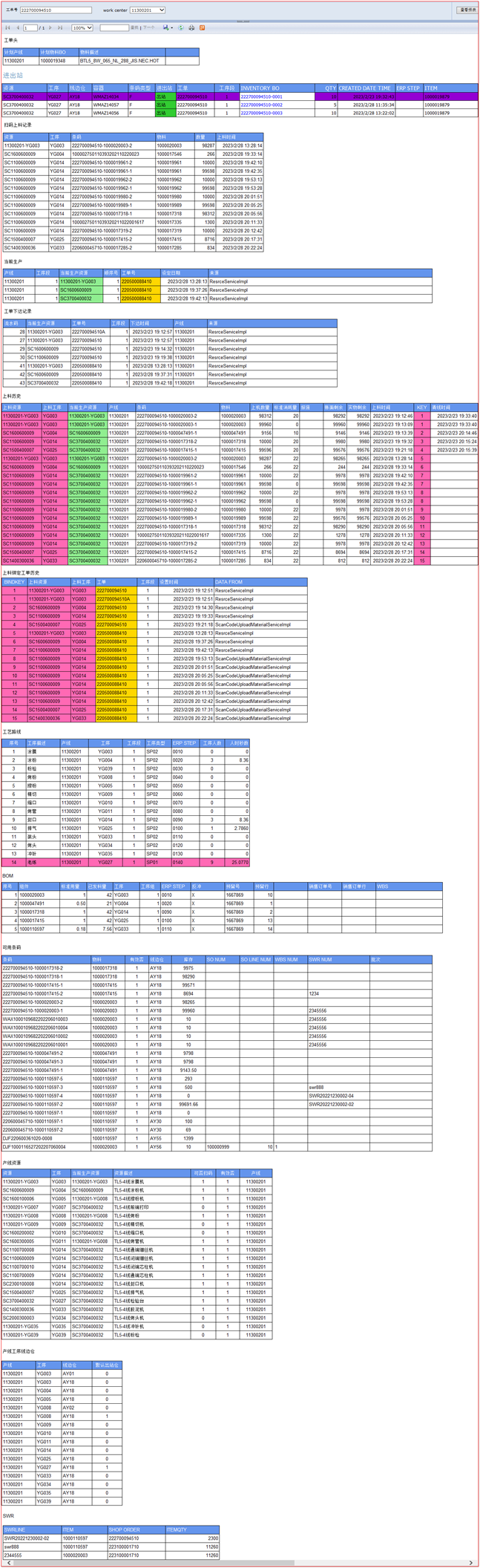 一个独立报表显示工单,进出站,扫码上料,工单下达,完工下线所有情况便于综合异常排查