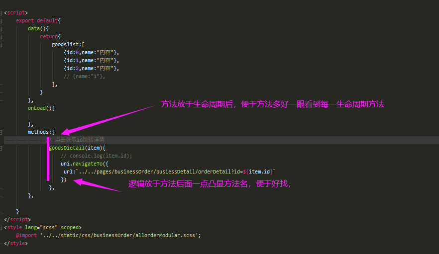 这里记录一下我自己刚刚入行不久在写代码因为没有排版好导致去找某处代码时老是找半天,经过长期的实践,然后再参考别人写的最后自己就按一个标准写,因为很多学校、培训都重在教功能布局的实现,但是忽略了代码排版这一块,因为我自己也是在这些地方学习,但是感觉都没有听到教怎么排版好看好找不乱的,虽然工具自带整理,但是有一些还是不行,有些换行多容易挤成一堆堆的看上去有点乱,所以在这里自己就做一些笔记,不是每个是适用,可能我的写法还有问题,但是我觉得对于那些刚刚入行,然后不知怎么排版好看的,而且又不知道怎么找一个标准排版的兄弟可以参考,结合自己的写出最好的效果,觉得有不太对的,大佬多多指教。以下示例: