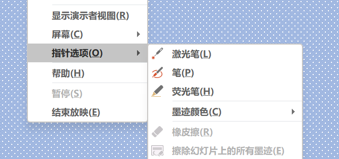 放映时鼠标右键即可