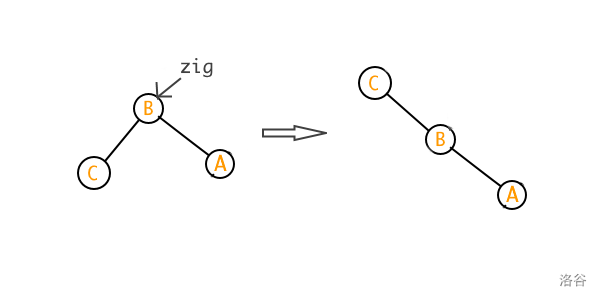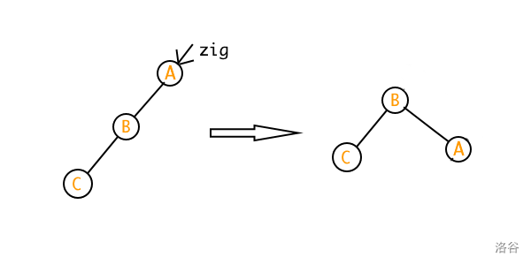 如果 \(x\) 就是 \(y\) 的左儿子,那么只需要对 \(y\) 做一次右旋就可以把 \(x\) 转到 \(y\) 的位置去了,直接调用一次 zig 函数即可。