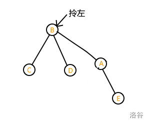 考虑这样的情况,我们还是要让 \(C\) 点变成根: