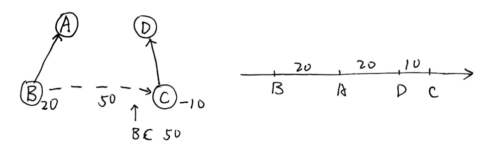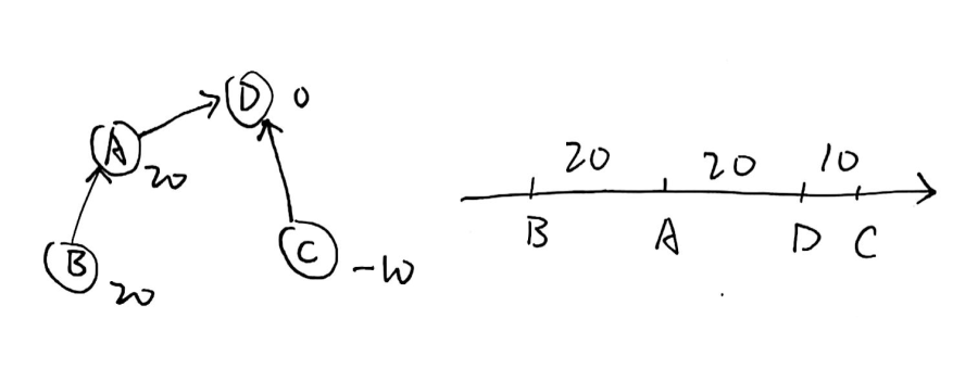 数轴上面有 \(n\) 个点,只给你 \(m\) 条两个点之间的相对位置信息,之后有 \(q\) 次询问,每次询问任意两点之间的距离,要求你在 \(O(n+m+q)\) 的时间内解决这个问题。