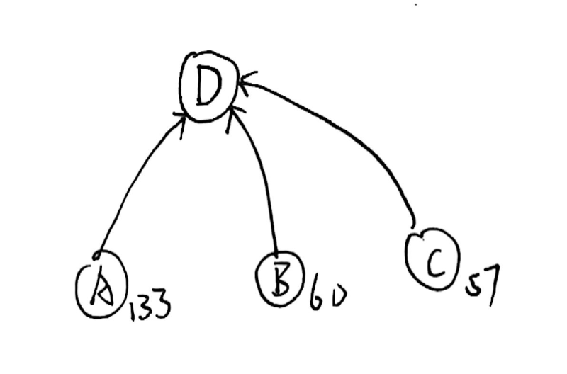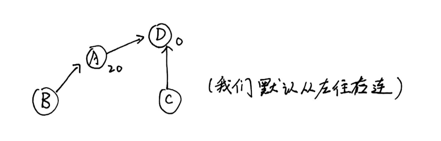 但是注意到我们的合并操作仅是针对上例中 \(A,D\) 点的数值修改,回到我们对于带权并查集的点权的定义,\(A\) 其下的那些节点们的权值怎么办?