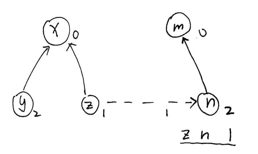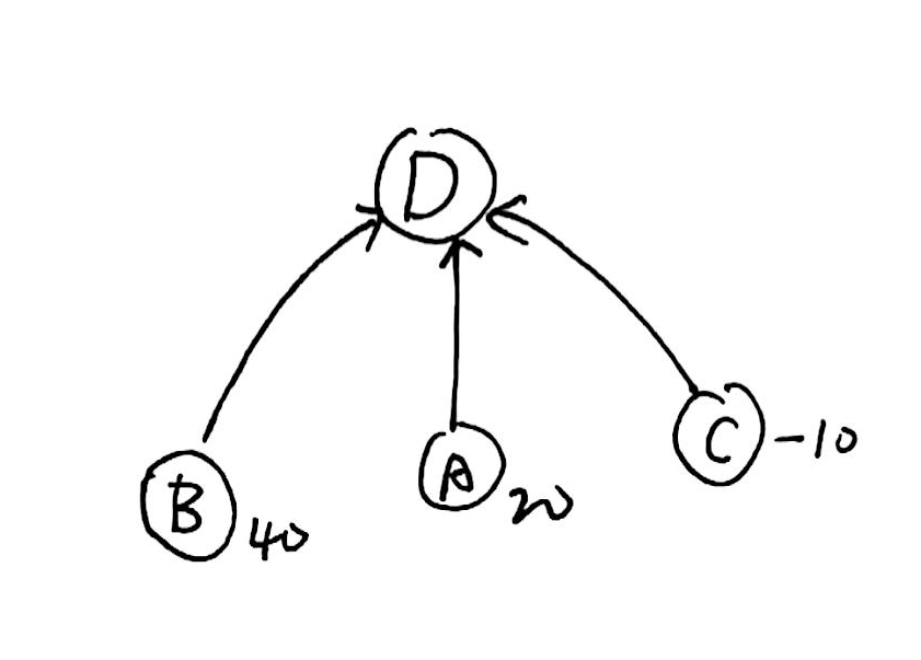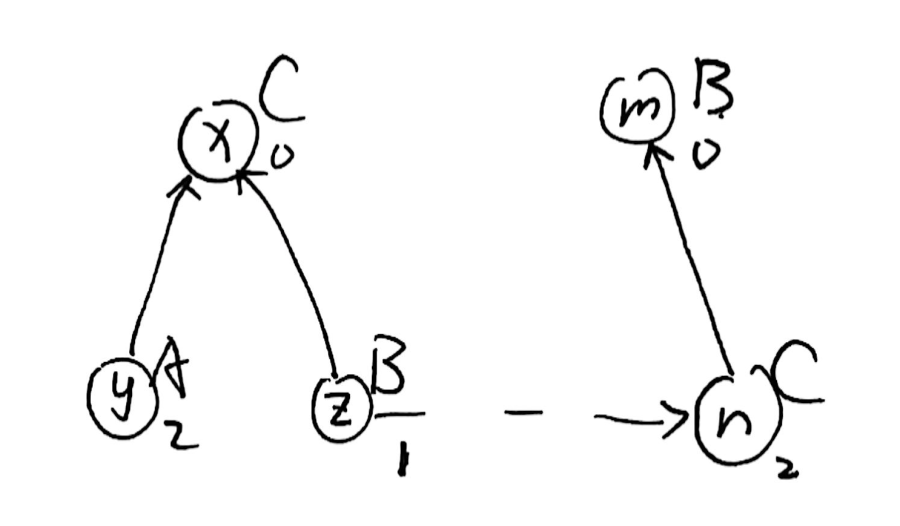 注意虽然 \(B\) 的值是不正确的,但是它相对于 \(A\) 的值一定是正确的,如果我们得到了 \(A\) 的正确值,\(B\) 的正确值当然也可以被更新,显然这是一个递归过程。