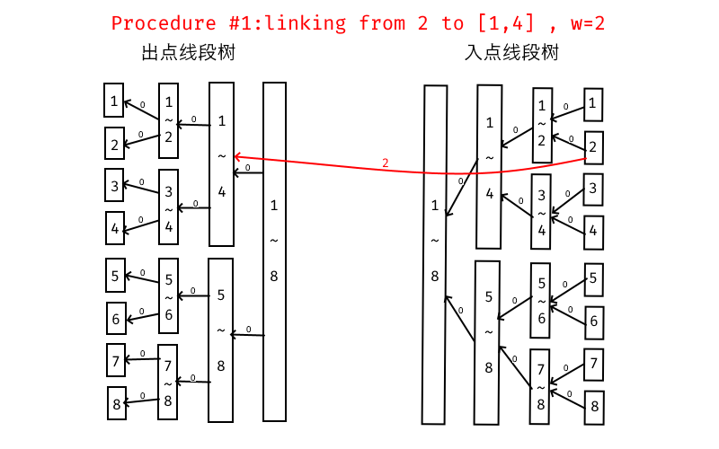 下面是连接 \(2\) 到 \([1,4]\) 的操作例: