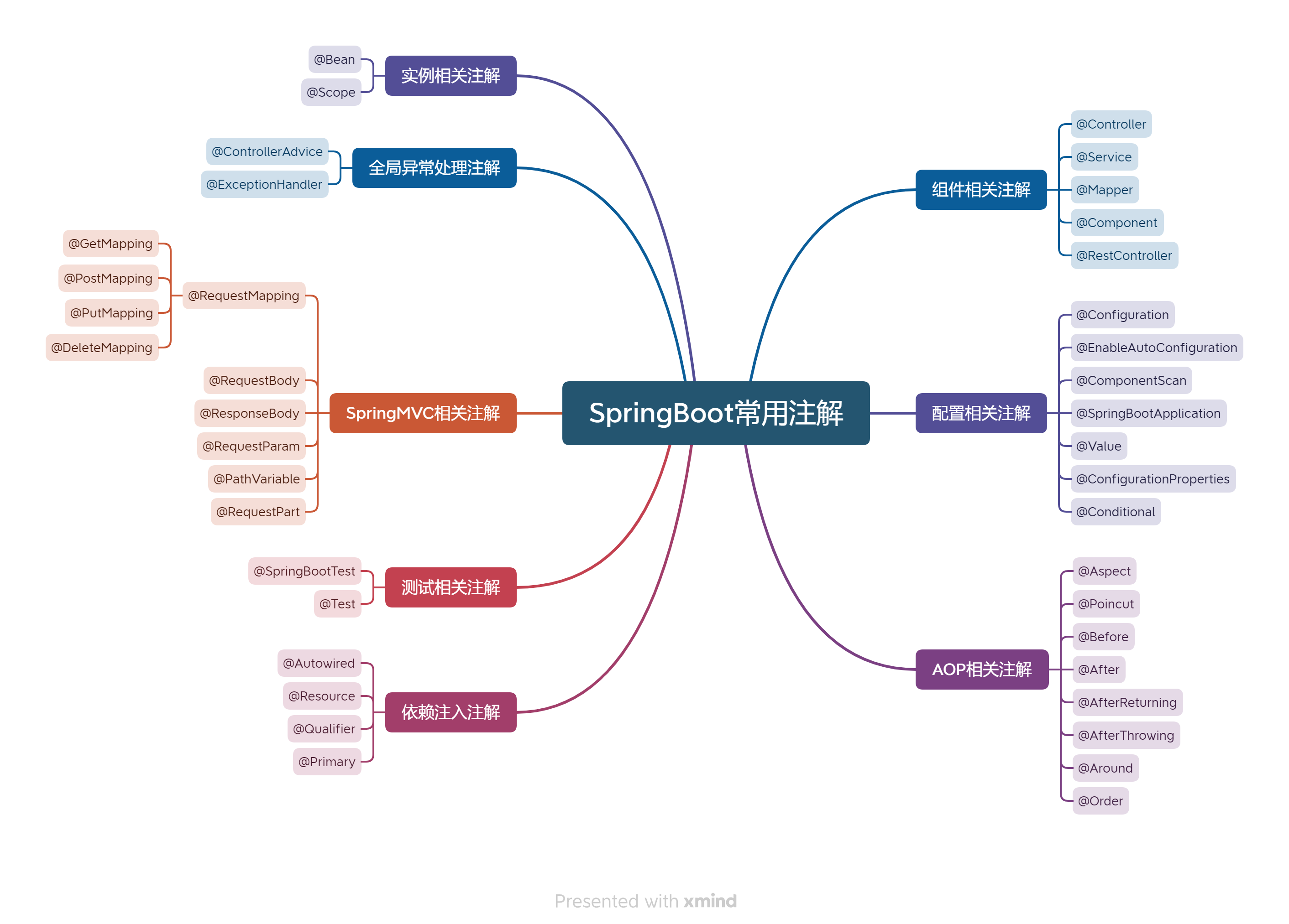 本文整理了SpringBoot常用注解,主要讲解这些注解的用法,并附上一致思维导图。