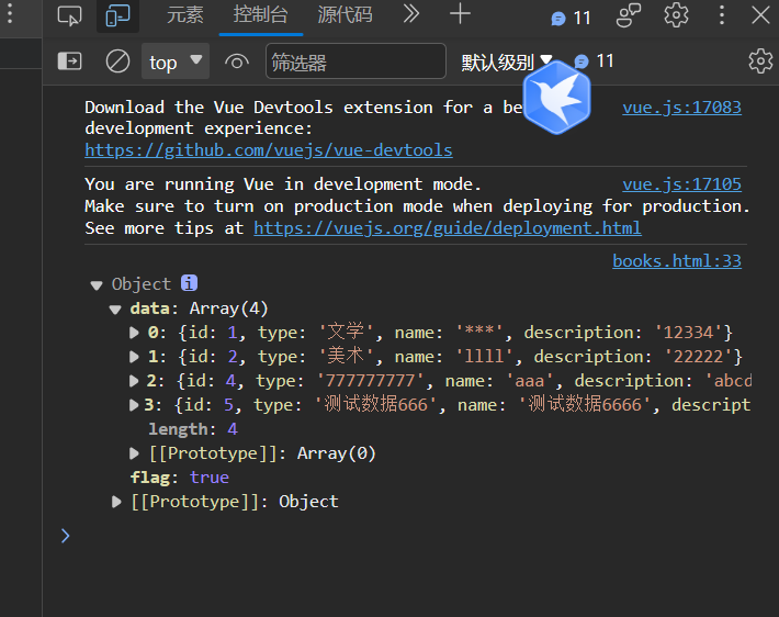 页面控制台中成功获取数据