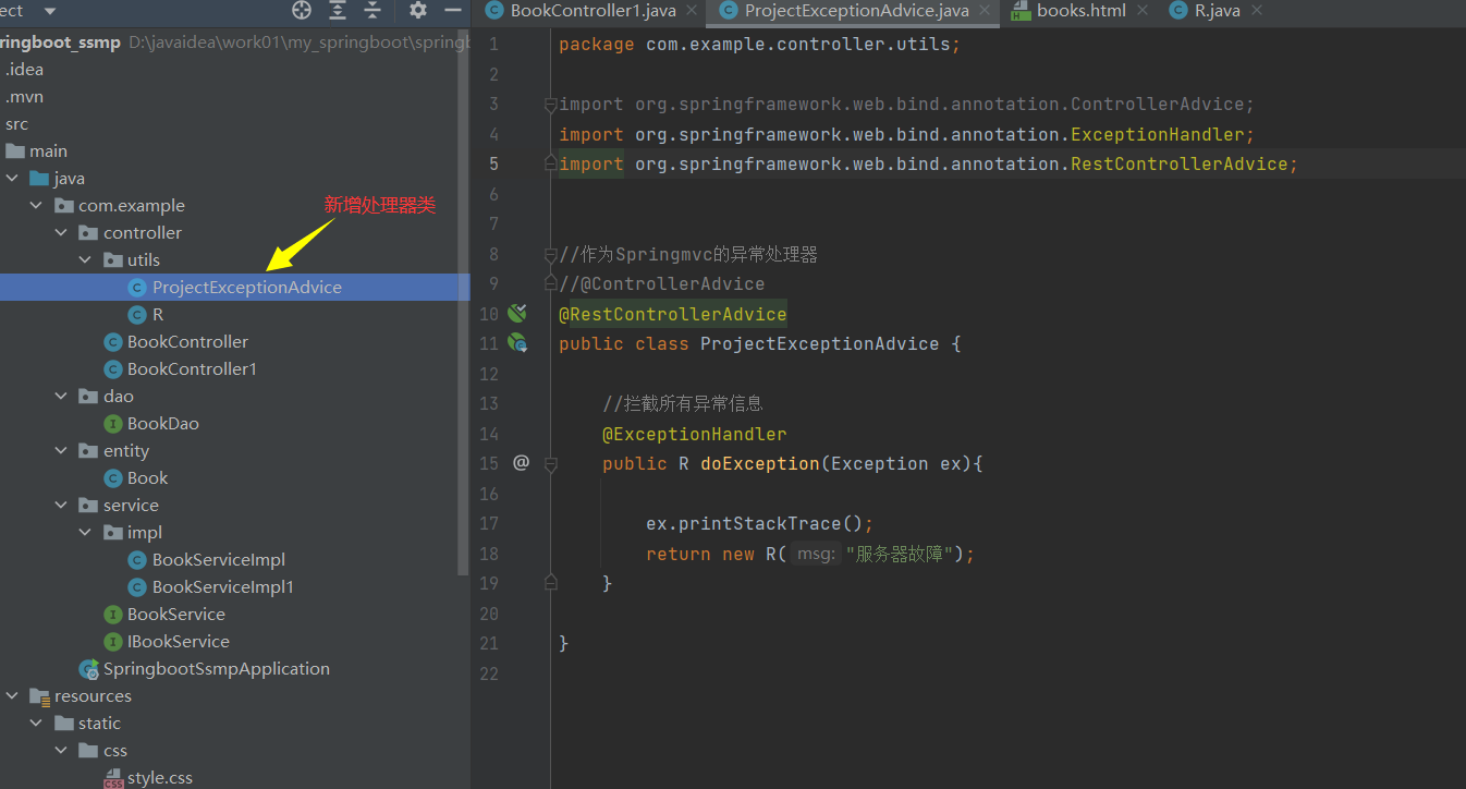 新建一个表现层的工具类:ProjectExceptionAdvice.java
