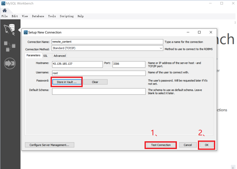最后点击右下角的“Test Connection”按钮测试连接。