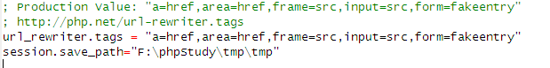 最近学习session,根据老师所讲,session文件存储在c:\windows\temp文件夹,但是找不到,利用百度查找发现具体存储位置在php.ini中,而我用的集成开发环境是phpStudy,就打开相应的php.ini文件,原来它的临时文件存储在f:/phpStudy/tmp/tmp,如下图