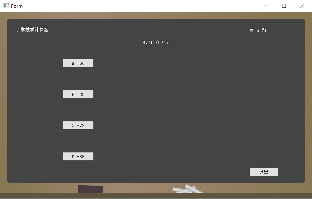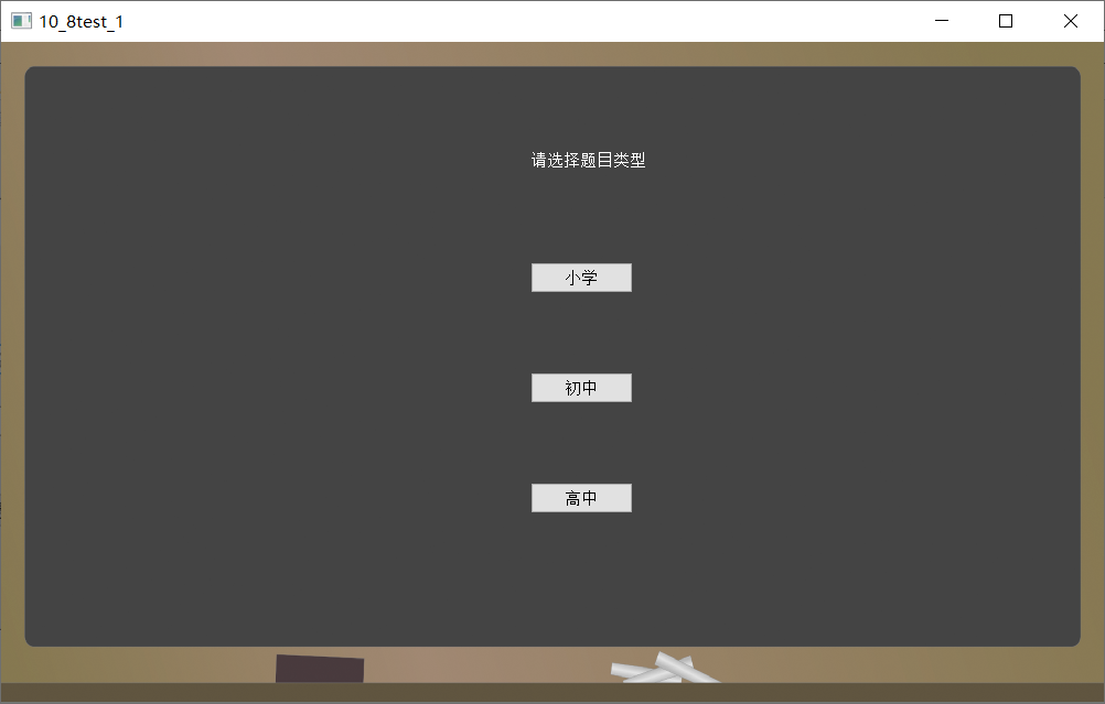 共设置了五个类,mainwidget为登录界面,subwidget为出题类型选择界面,primary、junior、high分别为小、初、高的题目数量选择与生成。其中,primary、junior、high对个人项目的代码进行了复用。