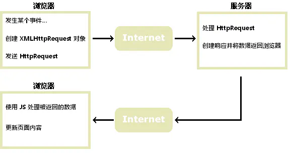 通过XmlHttpRequest对象来向服务器发异步请求,从服务器获得数据,然后用javascript来操作DOM而更新页面。