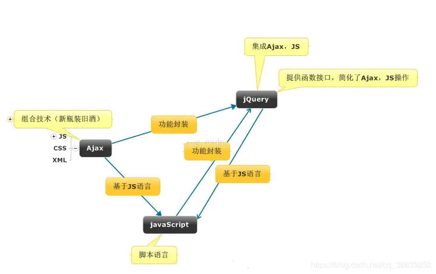 1、JS是一门前端语言。 2、Ajax是一门技术,它提供了异步更新的机制,使用客户端与服务器间交换数据而非整个页面文档,实现页面的局部更新。 3、jQuery是一个框架,它对JS进行了封装,使其更方便使用。jQuery使得JS与Ajax的使用更方便
