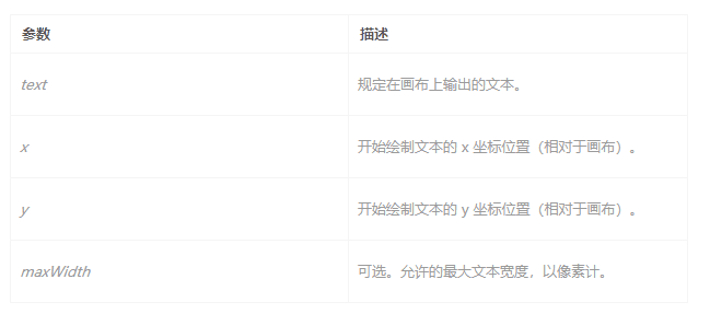 fillText(text,x,y,maxWidth)-在canvas上绘制实心的文本
