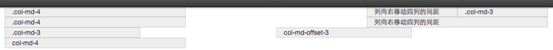<div class="col-md-4 **col-md-offset-4**">列向右移动四列的间距</div>