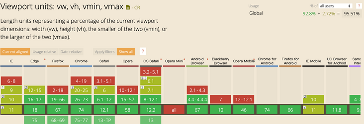 而使用vw天然就是一个根据屏幕宽度来做计算的长度单位,完美实现以上js计算功能。同时在移动端,vw的兼容性还不错,完全可以直接使用。