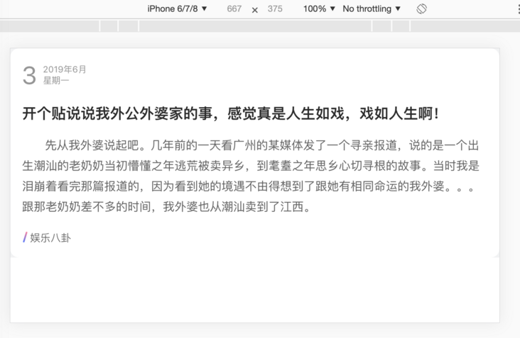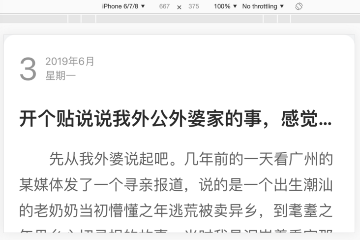 我们日常使用中,手机都是竖屏显示的,但是也会有横屏显示的时候。如果横屏显示,那么手机的宽度就变成了长度,长度就变成了宽度了,这个时候vw就显示的不对了。看下图,虽然显示没有乱,但是字变的很大了,复杂情况下布局估计也乱了。