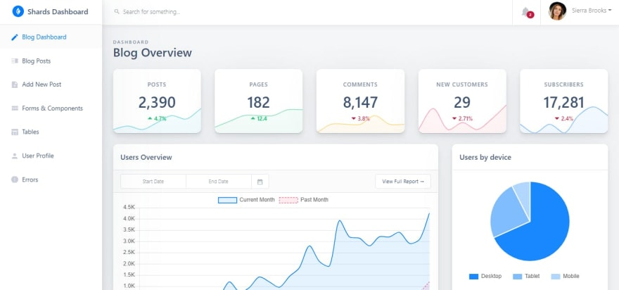 Shards Dashboard Lite 是一个免费的反应管理仪表板模板包具有现代化的设计系统和许多自定义模板和组件。它是完全响应的,性能良好的,并遵循所有的最佳实践。