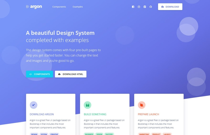 Argon Design System 由超过100个独立部件组成,你可以自由选择和组合。它提供了预先构建的示例,这将有助于确保开发过程是无缝的。有趣的是,所有组件在颜色上都可以有所不同。