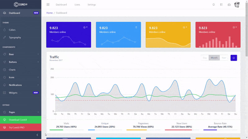 这是一个很酷的 React 仪表盘模板,使用 Redux 和 Bootstrap 4制作。下面是它的一些特性: Code splitting,suspense, lazyload, different color styles等等。