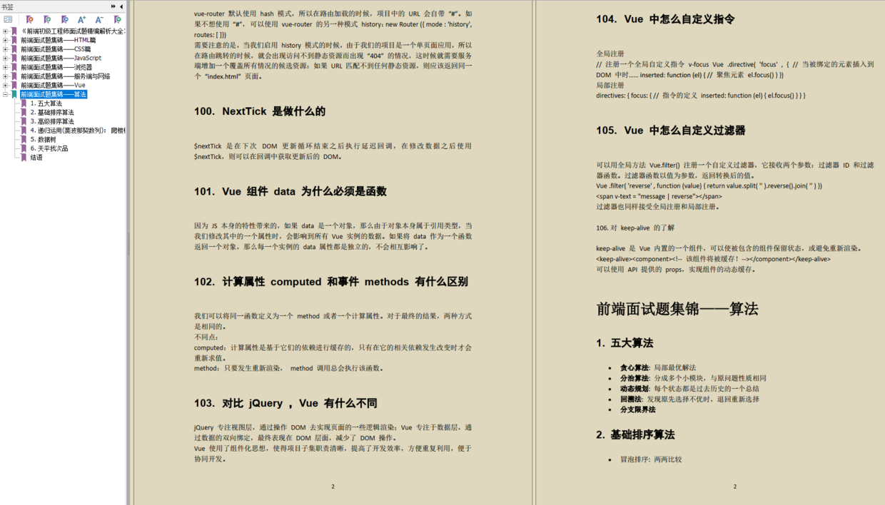 一两年的是要对技术掌握更高了,面临的问题也更发的难,这份前端初级工程师面试题精编解析内容包括有HTML、CSS、JS、浏览器、服务端与网络、Vue、算法,