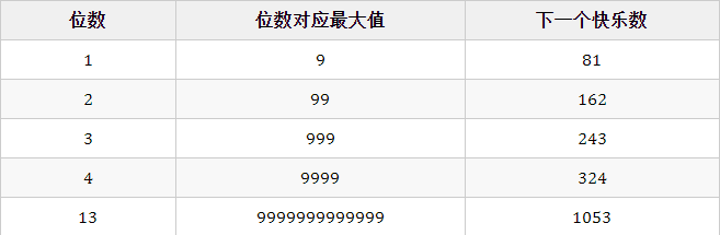 可以看到如果你是13位,你的下一次快乐数算法会变为4位1053, - 如果你是9999, 4位,下一个快乐数是324