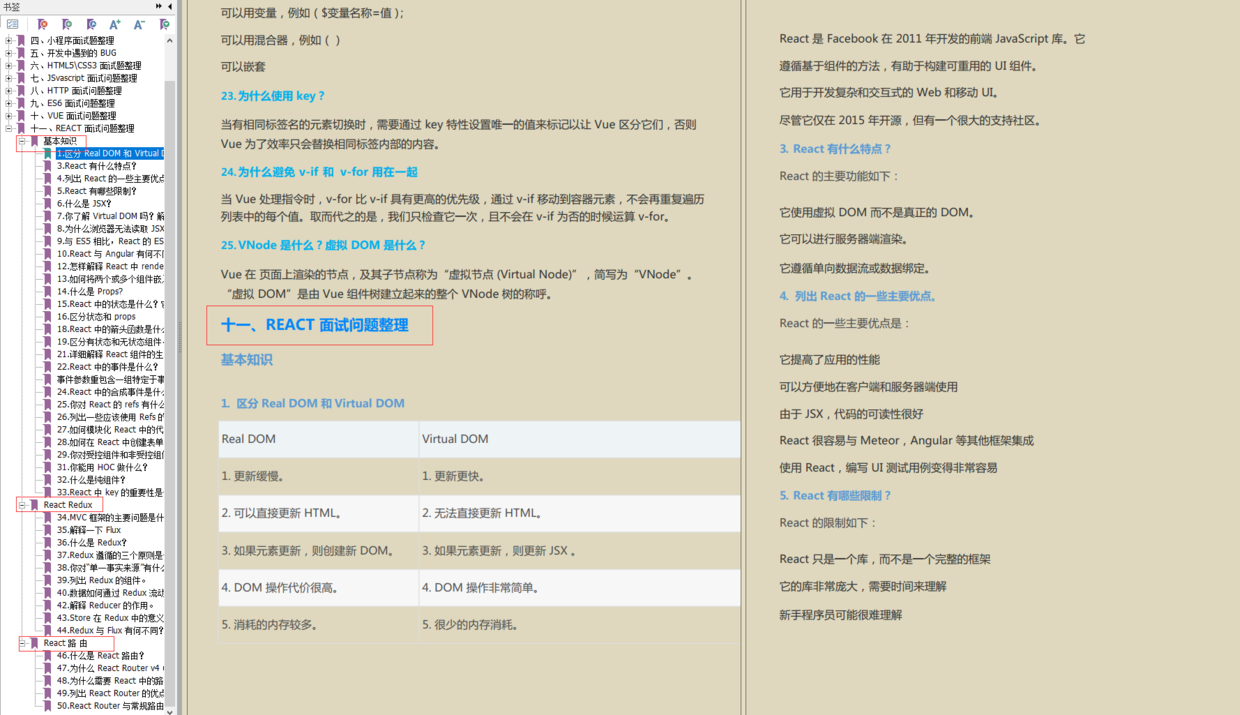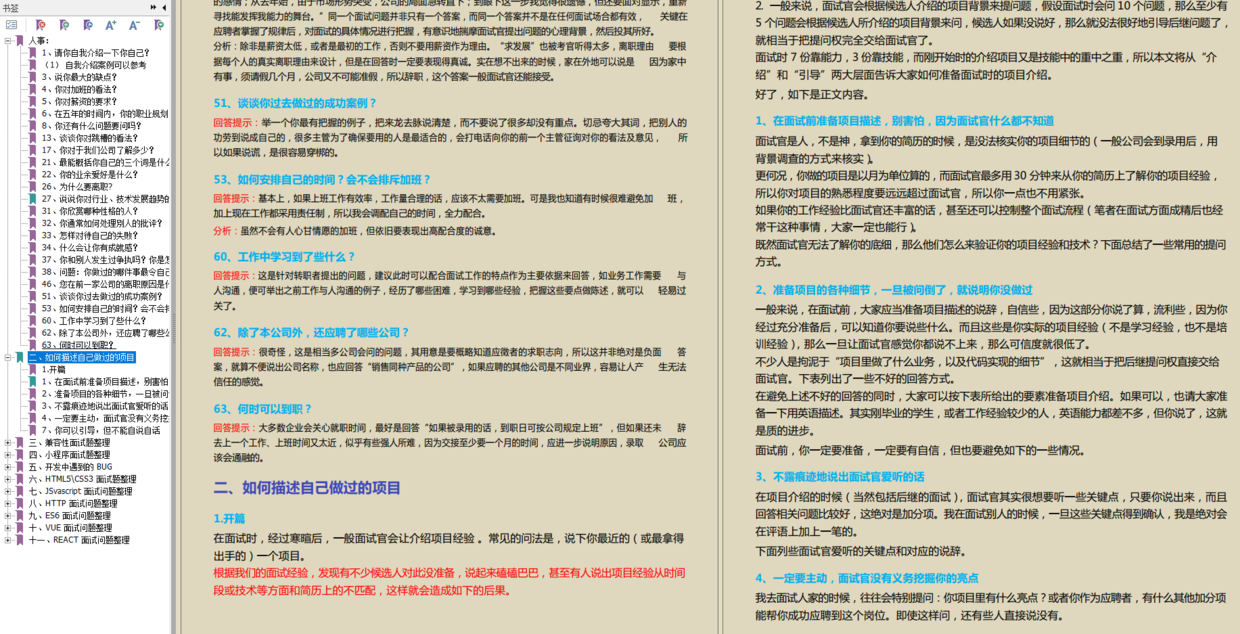 我还整理了一份前端面试题,包括人事、项目、小程序、HTML5/CSS3、JS、HTTP、ES6、Vue、REACT 等面试题,我们先一起看看题目。