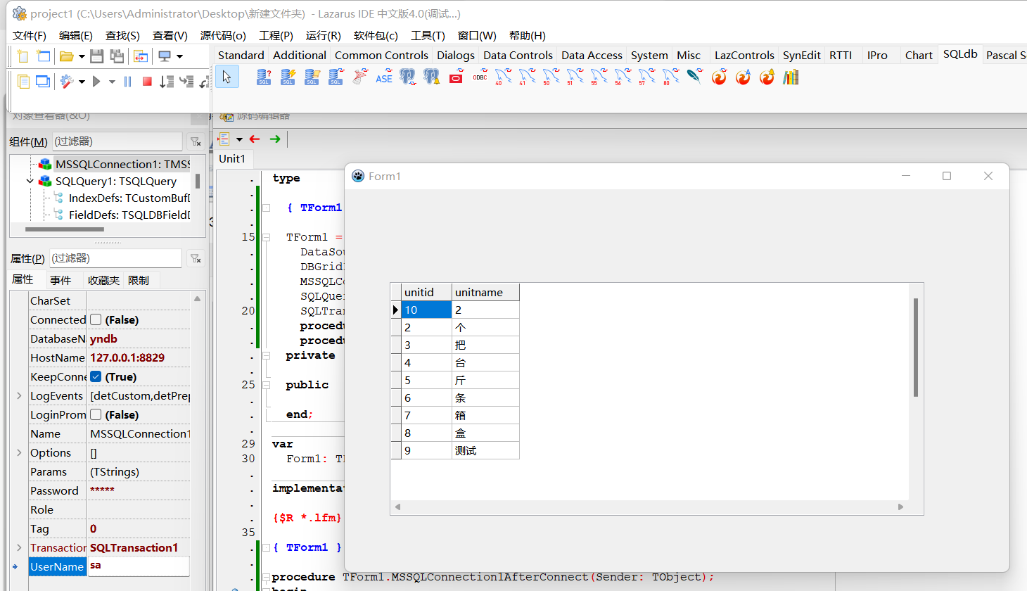 procedure TForm1.FormCreate(Sender: TObject); begin loadlibrary(extractfilepath(paramstr(0)) + 'dblib.dll'); MSSQLConnection1.Connected:=true; SQLQuery1.Open; end;