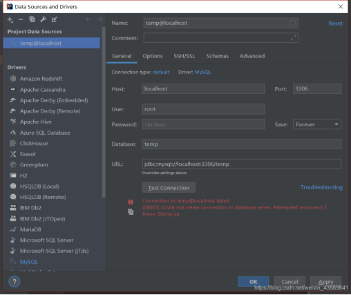 今天用IDEA的DataBase功能连接数据库出现了