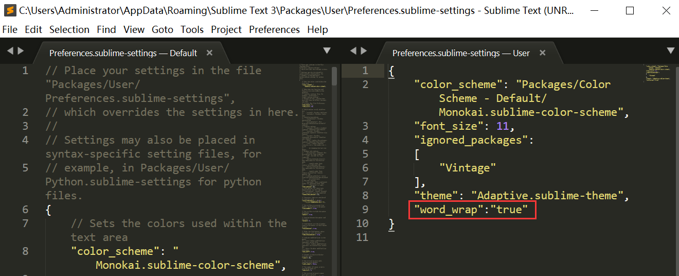 Sublime编辑器为所有项目设置自动换行的方法
