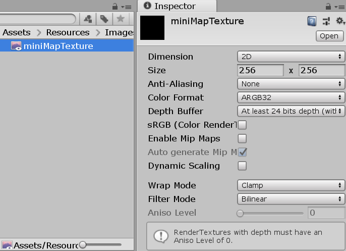 在资源文件新建一个Render Texture,命名为miniMapTexture。