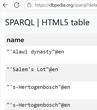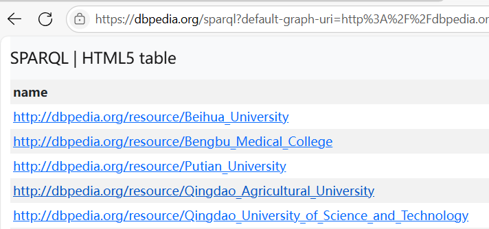 查询操作在线平台地址:https://dbpedia.org/sparql