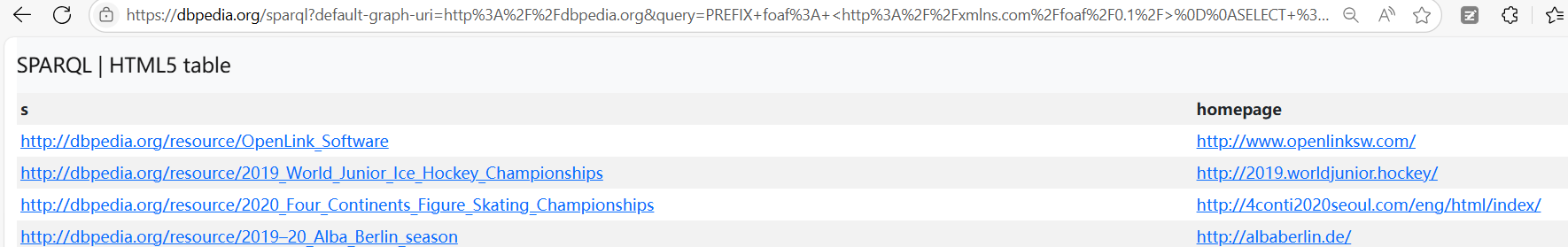 案例2:查询拥有 foaf:homepage 属性的所有主语。