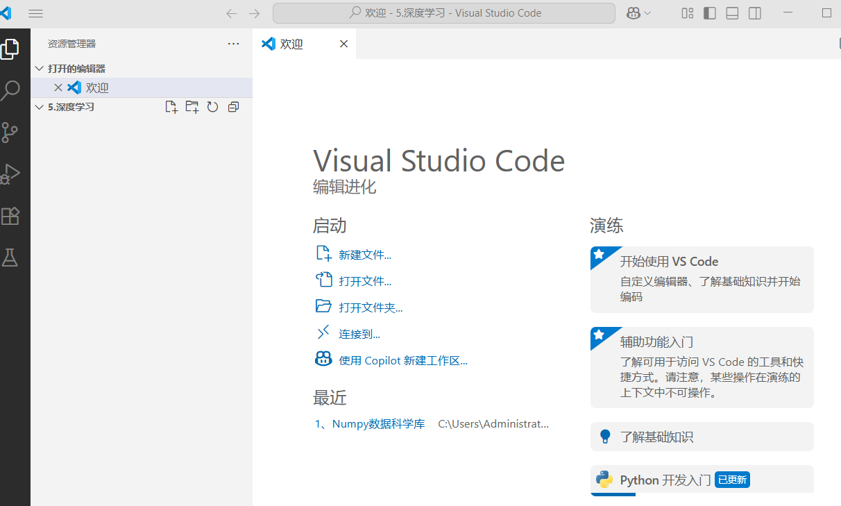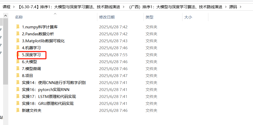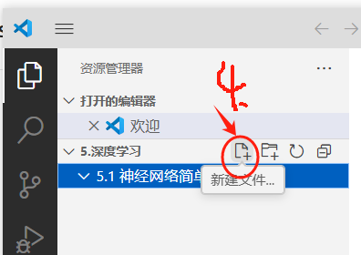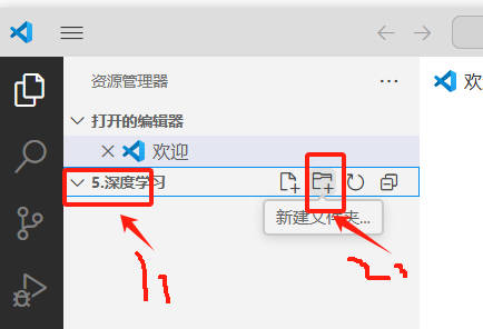 3. 选中工作区域“深度学习”,再新建子文件夹或文件,这里新建文件夹,然后再新建文件