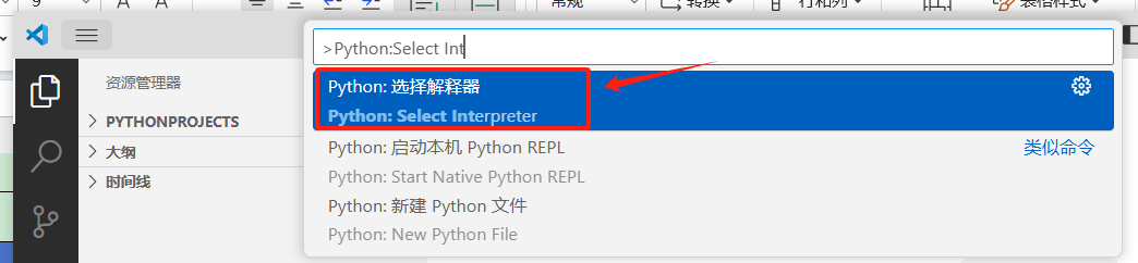 Ctrl+Shift+P(Windows/Linux)或Cmd+Shift+P(macOS)打开命令面板。 - 输入“Python: Select Interpreter”并选择该命令。