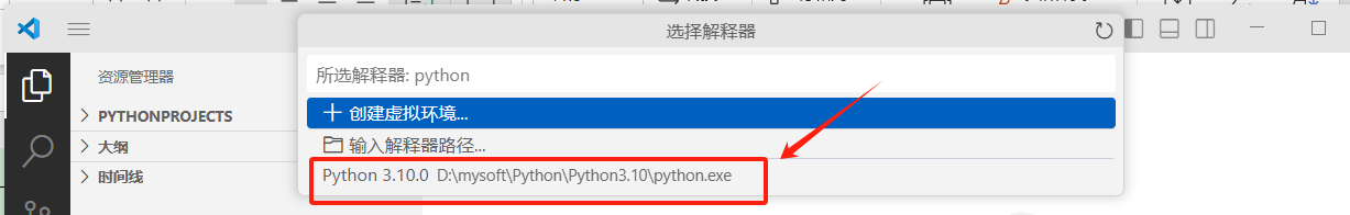 3.VSCode会列出当前系统中安装的所有Python解释器,选择你想要使用的版本。如果你使用虚拟环境,请选择对应的虚拟环境解释器。