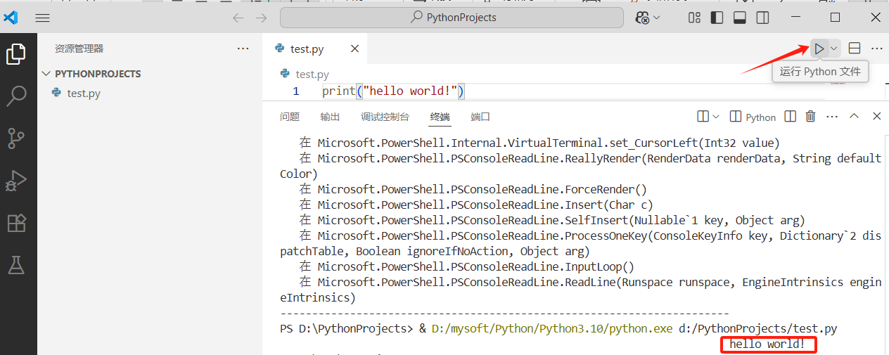 3. 验证配置:新建.py文件,输入print("Hello jihaishibei"),按F5运行