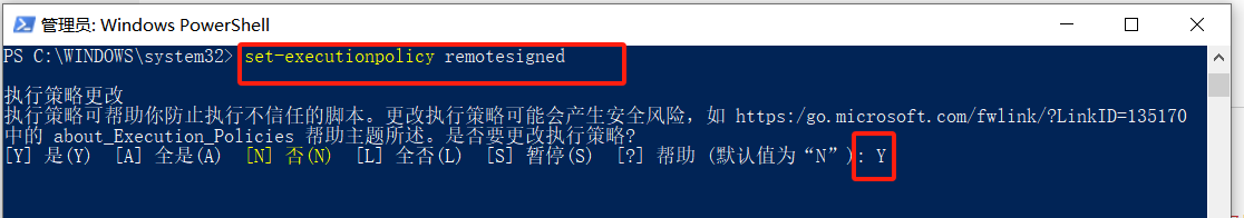 可能遇到不能执行脚本的错误:这是因为执行策略可帮助你防止执行不信任的脚本,我们把安全策略改了就行。