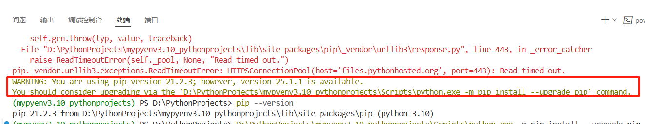 那么,创建的虚拟环境文件夹就是:D:\PythonProjects\mypyenv3.10_pythonprojects