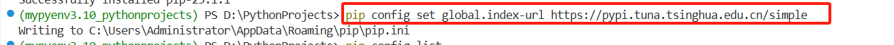 pip config set global.index-url https://pypi.tuna.tsinghua.edu.cn/simple