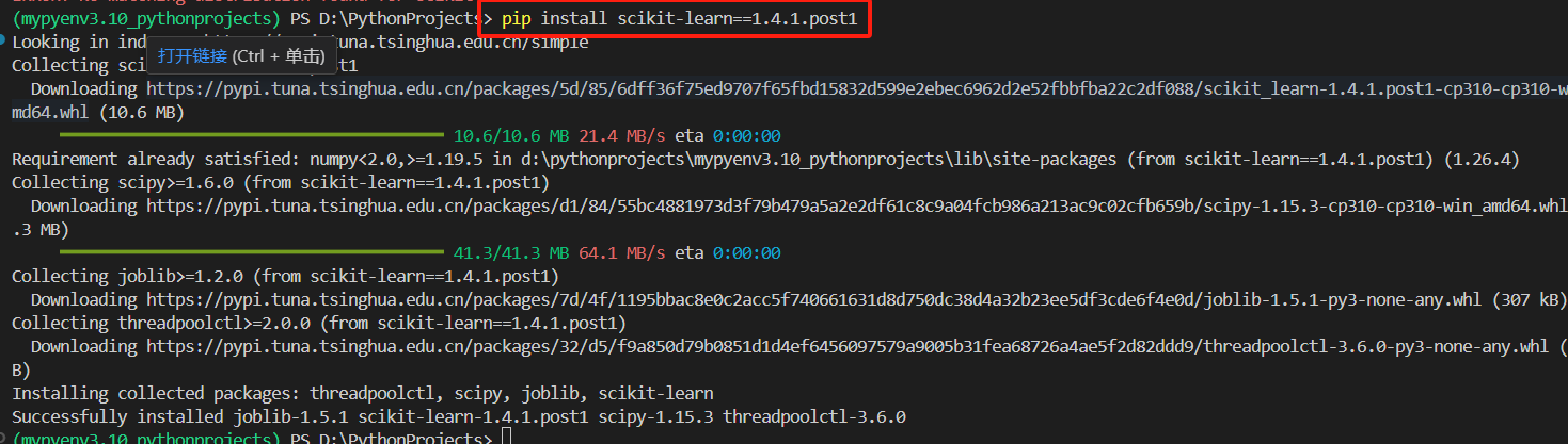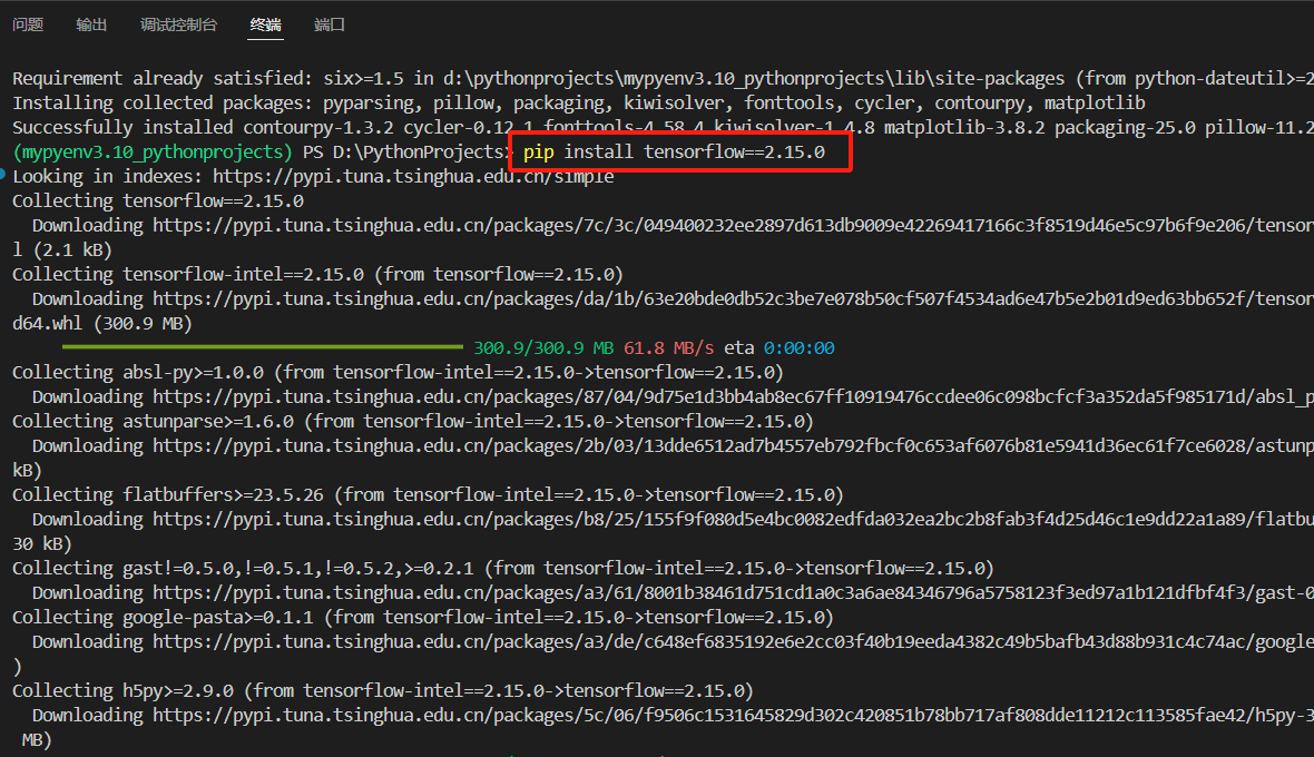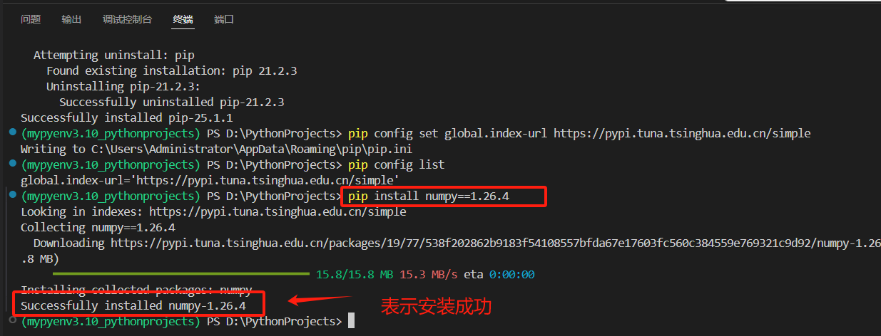 在上面全局配置了清华源安装后,以后单独安装就不用再指定镜像源