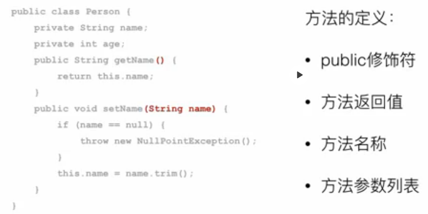 方法必须有返回值, setName()方法没有返回值,所以前面必须写void.