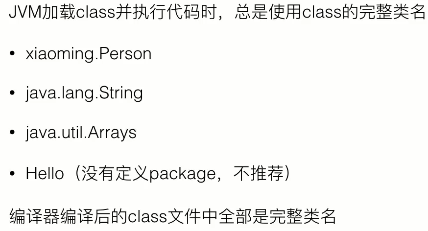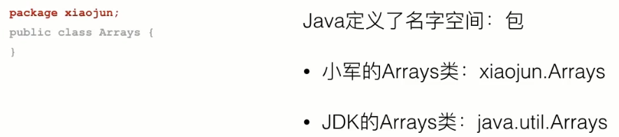 java定义了命名空间:包, 用包名 +类名来表示完整路径