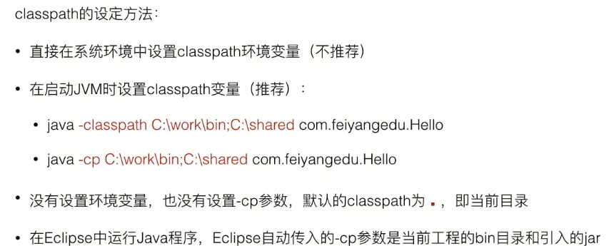 它指示JVM如何搜索class,JVM通过classpath决定搜索class的路径和顺序