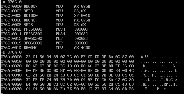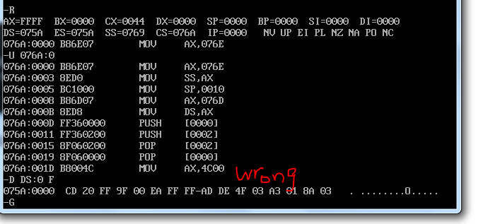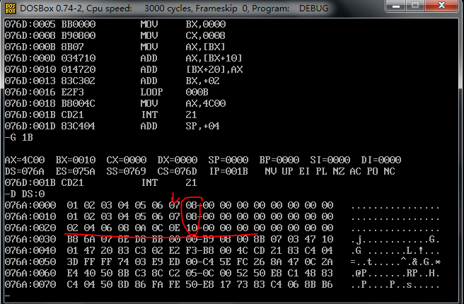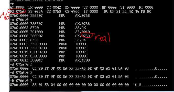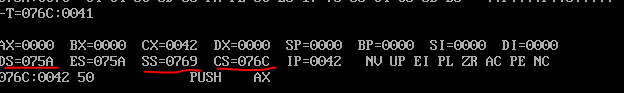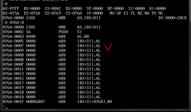 第一次找到的数据:原因是076C:0041 不是结束地址