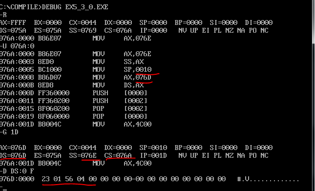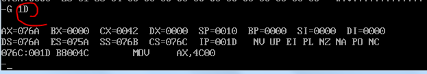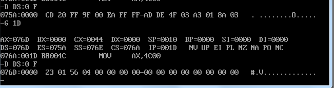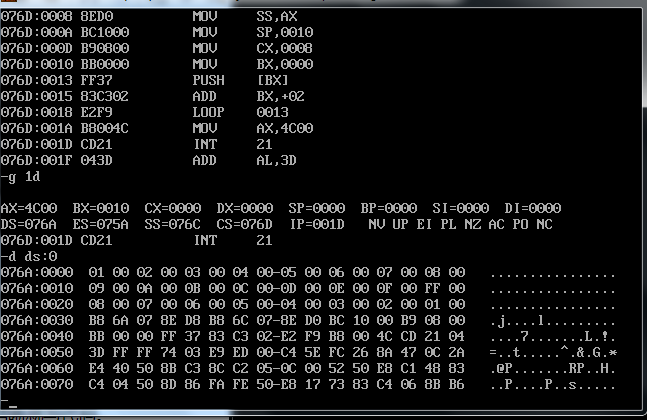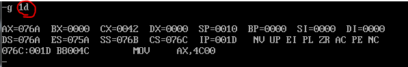 第二次:cs:001d是汇编之后的代码结束地址(cx代表所有指令所占字长?)